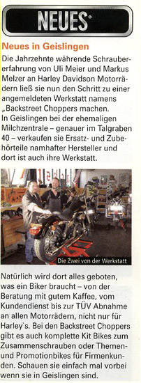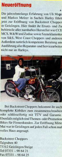 Backstreet Choppers - Talgraben 40 - D - 73312 Geislingen/Steige - Fon: 0 73 31-98 64 21 - Fax: 0 73 31-98 64 25 - info(at)backstreet-choppers(dot)com